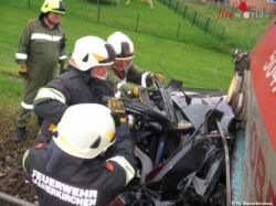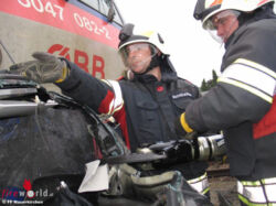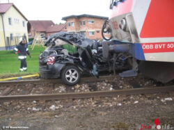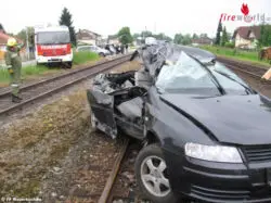 Vor Ort konnte Einsatzleiter Karl Daxecker feststellen, dass ein Pkw beim Bahnübergang mit einem Triebwagen kollidiert war. Im völlig deformierten Auto waren jedoch keine Personen mehr eingeklemmt. Sofort wurde der Brandschutz aufgebaut und die Unfallstelle abgesichert.