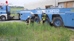 Am Einsatzort angekommen, wurde festgestellt, dass ein Sattelschlepper beim Rangieren von der Straße abgekommen und ein gefahrloses Weiterfahren nicht mehr möglich war. Nachdem der Regenwasserdurchlass mit Holz verbaut wurde, konnte sich der Lkw wieder aus eigener Kraft fortbewegen und seine Fahrt unbeschädigt fortsetzen.