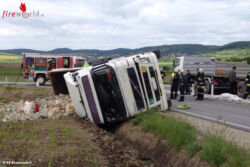 Nö: Lkw auf L100 bei Statzendorf in ein Feld gekippt