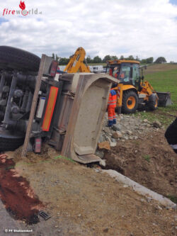 Ein Lkw-Lenker hatte die Kontrolle über sein Fahrzeug verloren, nachdem er von der L100 in die L110 Richtung Herzogenburg abbiegen wollte. Zum Glück konnte sich der Lenker selbst aus dem Fahrzeug befreien und wurde bis zum Eintreffen des Rettungsdienstes von einem Rettungssanitäter der Feuerwehr Statzendorf betreut.