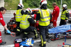 Nur wenige Augenblicke später verließen bereits die ersten Einsatzfahrzeuge das Feuerwehrhaus. Nach Ankunft am Unfallort bot sich den Einsatzkräften ein Verkehrsunfall mit drei beteiligten Fahrzeugen. Mehrere Verletzte wurden bei Ankunft der Feuerwehr durch das bereits anwesende Rote Kreuz erstversorgt. In gewohnt guter Zusammenarbeit konnten rasch die ersten Personen versorgt und ins Krankenhaus abtransportiert werden. Eine Beifahrerin musste mittels hydraulischem Rettungssatz aus dem Fahrzeug befreit werden. Mit Hilfe eines Rettungsspreizers konnte rasch die verkeilte Fahrzeugtüre geöffnet werden.