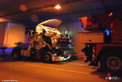 VÖSENDORF (NÖ): Im Tunnel S1 in Fahrtrichtung Schwechat ereignete sich am 30. Mai 2015 ein Verkehrsunfall zwischen zwei Lastwagen. Die Bezirksalarmzentrale alarmierte um 12:55 Uhr die Freiwillige Feuerwehr Vösendorf zum technischen Einsatz.
