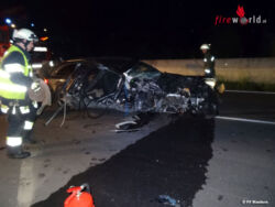 Sah der Unfallwagen auf der Fahrerseite nur einigermaßen leicht beschädigt aus, war der entstandene Schaden auf der Beifahrerseite massiv und zeigte eine komplett aufgerissene Fahrzeugseite. Die Aufgabe der FF Mautern bestand darin die Einsatzstelle abzusichern und auszuleuchten, sowie das Beseitigen der Wrackteile, das Binden von ausgetretenen Flüssigkeiten und das Reinigen der Fahrbahn. Nach 1,5 Stunden waren die Einsatzkräfte wieder eingerückt und die Einsatzbereitschaft wiederhergestellt.