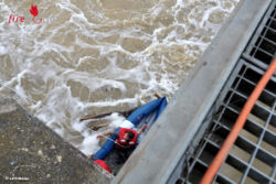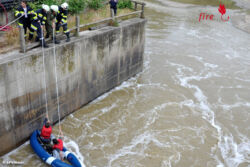 Feuerwehrleute retten Betroffene aus reißender Strömung