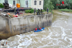 Mittels Rettungsleinen wurden Insassen und Boot gesichert und dann von den Feuerwehrkräften aus der Strömung gezogen. Erschöpft und völlig durchnässt erreichten die beiden Männer daraufhin das rettende Ufer und wurden von anwesenden Sanitätern und Notarzt des ÖRK versorgt. Sie dürften diese Notsituation nach vorliegenden Informationen aber unverletzt überstanden haben.