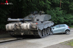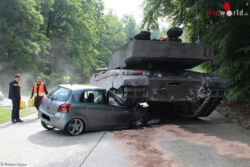 Deutschland: Abbiegender Panzer überrollt Pkw im Frontbereich