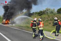 WIENER NEUDORF (NÖ): Am 1. Juni 2015 um 8:17 Uhr wurde die Freiwillige Feuerwehr Wiener Neudorf zu einem brennenden Klein-Lkw auf die Autobahn A2 Fahrtrichtung Süden kurz vor Traiskirchen alarmiert. Schon während der Anfahrt wurden die Einsatzkräfte von der Bezirksalarmzentrale informiert, dass auf den ASFINAG-Kameras eine Rauchsäule zu sehen ist und bereits mehrere Passanten angerufen hätten.