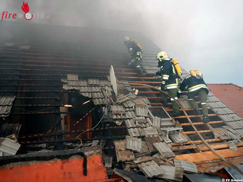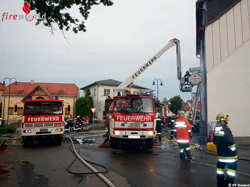 Beim Eintreffen am Einsatzort war der Brand zwar weitgehend gelöscht, von noch bestehenden Brandherden im Gebäude musste allerdings noch ausgegangen werden. Vom örtlichen Einsatzleiter wurde auf Grund der schweren Gebäudeschäden und der damit verbundenen Einsturzgefahr jeglicher Innenangriff untersagt. STEIG Gmünd erhielt den Auftrag die Dachhaut zu öffnen und danach die Brandbekämpfung an der Vorderseite zu unterstützen.