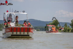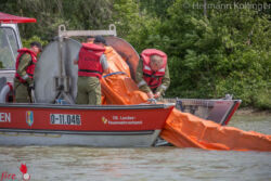 ALKOVEN (OÖ): Mehrere Feuerwehren standen am Nachmittag des 30. Mai 2015 auf der Donau in Höhe von Alkoven im Einsatz. Grund dafür war eine Übung dafür, im Falle eines Ölaustrittes auf dem Fluss Ölsperren zu errichten. Eine zwar seltene, aber durchaus auch knifflige Aufgabe, die es immer mal wieder zu trainieren gibt.