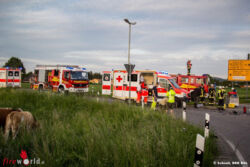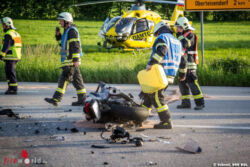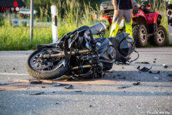 TEISENDORF (BAYERN): Kurz nach 19.30 Uhr ist am 2. Juni 2015 ein VW-Golf beim Links-Abbiegen von der Kreisstraße BGL12 in die B304 bei Teisendorf mit einem Motorradfahrer zusammengestoßen, der mit seiner Suzuki von Freilassing kommend in Richtung Traunstein fuhr. Das Krad prallte in die Fahrerseite des Pkw, wobei der 28-jährige Biker aus dem Landkreis Traunstein stürzte und nach erster Einschätzung des Roten Kreuzes schwer verletzt wurde; die drei Insassen des Autos kamen alle leicht verletzt davon.