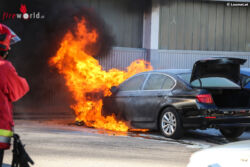 WELS (OÖ): Freitagnachmittag, 5. Juni 2015, stand am Parkplatz eines Autohauses ein abgestelltes Fahrzeug in Flammen. Anwesende Personen hielten den Brand durch massiven Einsatz von Feuerlöschern bis zum Eintreffen der Feuerwehr in Schach. Dadurch wurde ein Übergreifen der Flammen auf ein angrenzendes Gebäude verhindert.
