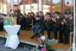 Was wäre ein Feuerwehrgeburtstag ohne Feuerwehren, 260 Feuerwehrkameraden der Nachbarsfeuerwehren durfte DI Peter Staudinger begrüßen. Diakon und Bezirksfeuerwehrkurat Herbert Schiller segnete eine Figur des Hl. Florian, die im Feuerwehrhaus einen besonderen Platz bekommen wird. Die Festredner bedankten sich allgemein bei den Feuerwehren und wünschten allen Kameraden ein immer wieder gutes nach Hause kommen nach den Einsätzen. Wir könnten es uns kaum vorstellen, wenn nicht die vielen freiwilligen Helfern unsere Sorgen kleiner machen würden und dem Nächsten in der Not beistehen würden. Mit dem Leitspruch „Gott zu Ehr, dem Nächsten zur Wehr“, wurde der Festakt beendet.