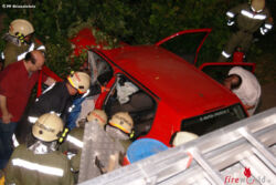 Ein Pkw mit zwei Insassen war kurz zuvor gegen einen Baum am Straßenrand gefahren. Dabei wurde der 39-jährige Beifahrer verletzt und der 36-jährige Lenker schwerstverletzt. Der Beifahrer konnte durch das Rote Kreuz versorgt werden. Das Fahrzeug wurde durch den Aufprall so stark deformiert, dass der Lenker eingeklemmt wurde.