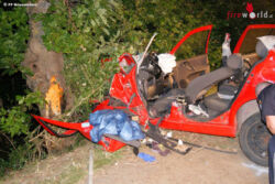 Die Rettung des Lenkers gestaltete sich langwierig, da insbesondere der Fußraum komplett deformiert war. In Zusammenarbeit mit dem Roten Kreuz und den Ärzten konnte der Lenker dann mit dem hydraulischen Bergegeräten befreit werden und an das Rote Kreuz mit dem Notarzt übergeben werden.