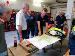 Das Wetter am Übungstag, mit viel Sonne und hohen Temperaturen passte jedenfalls zur Übungsannahme. Die Übungs-Einsatzleitung erhielt bei ihrem Wirken Unterstützung durch den Stabsdienst der beiden eingesetzten Abschnitte. Mit geringem Vorlauf wurde vom Stab die Lage ausgekundschaftet. Die verschiedenen Stabsstellen konnten dann aber rasch, den schon auf Anfahrt befindlichen Einsatzkräften, zielgerichtet ihre Einsatzaufträge übergeben. Der Stab setzte sich aus Stabsmitgliedern beider Abschnitte zusammen. Eine neue und auch Gewinn bringende Erfahrung. Die Mannschaft des Einsatzleitfahrzeuges des BFVGU komplettierte das Führungsmittel „Stab“.