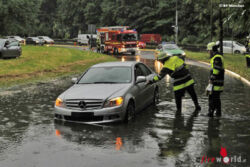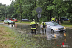 - Im Bereich Ifflandstraße fuhr ein Pkw-Fahrer in die überflutete Fahrbahn. Leider konnte der Fahrzeugführer die Höhe des Wassers nicht einschätzen. Infolge dessen versagte das Fahrzeug seine Dienste und blieb im Wasser stecken.