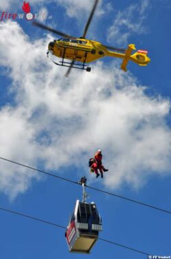Als Übungsannahme wurde ein technisches Gebrechen an der Gondelbahn angenommen. Die Bergespezialisten von Irndorf und Bergrettung wurden per Tauflug auf die Gondeln der neuen 10 Kabinenbahn geflogen um dort die Menschenrettung durchzuführen. Bei atemberaubendem Panorama wurde einen ganzen Tag mit den Notärzten, Flugrettern und Piloten von der ÖAMTC Flugrettung trainiert.
