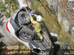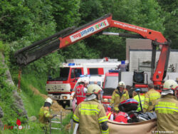 Die verletzte Person wurde mittels Korbtrage und mithilfe des Hiab aus dem Pkw gerettet und auf die Straße gehoben. Der Notarzt machte den Patienten transportbereit und brachte ihn ins Krankenhaus Schwarzach, wo er seinen schweren Verletzungen erlegen ist.