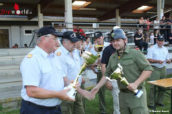 Zur Abschlusskundgebung am Sportplatz in Frauental, die von der Marktmusikkapelle Frauental umrahmt wurde, konnte Bereichsbewerbsleiter BR d.F Johann Bretterklieber unter anderem den Bürgermeister von Frauental Bernd Hermann, Bereichsfeuerwehrkommandant OBR Helmut Lanz, dessen Stellvertreter BR Fritz Reinprecht sowie zahlreiche Abschnittsbrandinspektoren des BFV Deutschlandsberg begrüßen. Im Zuge der Schlusskundgebung konnte HBI d.V. Alois Gritsch, Mitglied der FF Bad Gams, feierlich die Bewerterspange für 75-malige Bewertertätigkeit überreicht werden. Die Ehrengäste gratulierten allen Teilnehmern zu ihren Leistungen und dankten den Kameradinnen und Kameraden für ihren ehrenamtlichen Einsatz für die Bevölkerung.
