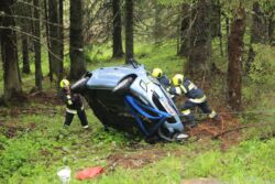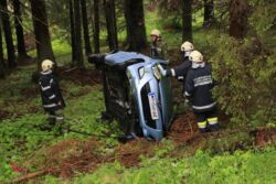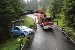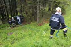 Dass diesmal die 31 alarmierten Feuerwehrmänner zu keinem Unwettereinsatz alarmiert wurden bewies der Einsatzbefehl "Verkehrsunfall mit eingeklemmter Person auf der B 77". Aus nicht näher bekannter Ursache verlor ein Pkw auf der Gaberl Bundesstraße kurz unterhalb der Passhöhe die Kontrolle und schlitterte circa 15 Meter einen Abhang hinunter und kam seitlich auf der Fahrerseite zum stehen.
