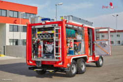 So bieten die Fahrzeuge mit Rosenbauer Leichtaufbau bei einem zulässigen Gesamtgewicht von 13,5 t eine Beladekapazität von bis zu 6,5 t bzw. Beladevolumina von bis zu 13 m3. Bei Kastenwagen mit 5,3 t Gesamtgewicht stehen im Aufbau 4,5 m3 zur Verfügung. Das ist in der Regel mehr als für die entsprechende Normbeladung je nach Type erforderlich ist und wird von den Feuerwehren gerne genutzt, um individuelle Zusatzausrüstung mitführen zu können.