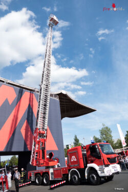 1873 hat Magirus die Ulmer Leiter mit einer Arbeitshöhe von 14 Metern bei der Weltausstellung in Wien präsentiert – damals eine Sensation, die richtungsweisend für eine effiziente Brandbekämpfung war. Mehr als 140 Jahre später stellt das Unternehmen eine Drehleiter vor, die die fünffache Länge der damaligen Ulmer Leiter hat und setzt damit weltweit einen neuen Maßstab: Die M68L ist das neue Flaggschiff der Extra Long Ladders (XXL) von Magirus. Mit einer ganzheitlichen und umfangreichen Überarbeitung der Konstruktion garantiert die Drehleiter beste Stabilität und somit optimale Bedingungen bei der Höhenrettung. Eine neue Konstruktionsmethode bei der Abstützung mit einer Breite von sechs Metern ermöglicht ein sicheres Retten. Auch der neu aufgebaute siebenteilige Leitersatz, der eine optimale Ausgewogenheit von Gewicht und Stabilität aufweist, trägt zur Sicherheit der Einsatzkräfte bei. Die erwarteten 130.000 Besucherinnen und Besucher der Messe werden bis Samstag täglich ab 15 Uhr mit einer eigenen „Drehleiter-Show“ von Magirus nicht nur informiert, sondern auch unterhalten.