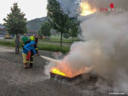 Nach einer theoretischen Einschulung durch Brandinspektor Peter Schoisswohl jun. konnten sich die Teilnehmer mit der Brandbekämpfung vertraut machen. Gemeinsam mit AW Sigi Bachmayr wurde eine Wanne mit brennbarem Material entzunden. Diese musste von den Teilnehmern abgelöscht werden. „Der richtige Umgang mit einem Feuerlöscher kann Leben retten und ist auch in den öffentlichen Gebäuden besonders wichtig“ waren sich die interessierten Teilnehmer nach der Schulung einig.