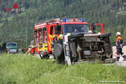 Vor Ort konnten die ersteintreffenden Kräfte schnell Entwarnung geben. Der leicht verletzte Fahrer wurde notärztlich behandelt und per Rettungswagen in die Kreisklinik Bad Reichenhall eingeliefert. Die Freiwillige Feuerwehr Bayerisch Gmain und die nachgeforderte Ortsfeuerwehr Bischofswiesen sicherten die Unfallstelle ab, regelten den Verkehr, stellten den Brandschutz sicher, kippten das Auto zurück auf die Räder und reinigten die Fahrbahn. Die Feuerwehren Bad Reichenhall und Piding und der zweite Rettungswagen des Roten Kreuzes wurden nicht mehr benötigt.