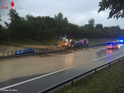 Das heftige Gewitter im Raum Wil führte zu einem Großaufgebot mehreren Gemeindefeuerwehren. Nach rund einer Stunde musste die Autobahn, Fahrrichtung Zürich, vollständig gesperrt werden. Diese war mit einer mehreren Zentimeter dicken Schlamm- und Geröllschicht bedeckt. Fahrzeuge sind steckengeblieben und mussten geborgen werden.