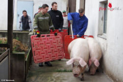 Als Königsdisziplin stellte sich das Arbeiten mit dem über 200 Kilo schweren Eber heraus. Dabei mussten die Teilnehmer erkennen, dass dieses Kraftpaket sich keinen Millimeter bewegt, wenn es nicht möchte. Somit musste dieser Versuch abgebrochen werden.