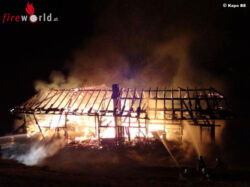 Trotz Löscheinsatz konnte nicht verhindert werden, dass das Bauernhaus in Vollbrand geriet und der Dachstock komplett durch das Feuer zerstört wurde. Die Löscharbeiten dauern per frühen Nachmittag nach wie vor an.