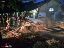 BERN (SCHWEIZ): Am Montagabend, 15. Juni 2015, wurde beim Brand von gelagerten Strohballen im Nationalen Pferdesportzentrum in Bern eine Person bei Löscharbeiten verletzt.