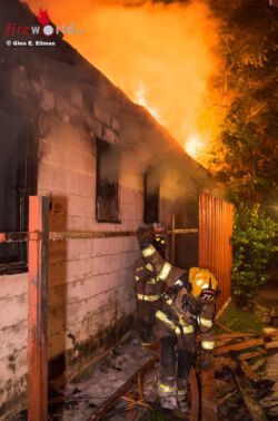 Unverzüglich wurde ein umfassender Löschangriff gestartet, Während des Aufbaus der Wasserversorgung durch die Engine 12 startete ein Atemschutztrupp mit der Suche des Bewohners. Dieser wurde schlussendlich nicht im Gebäude, sondern unverletzt bei einem Nachbarn auf der Straße vorgefunden.