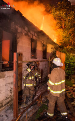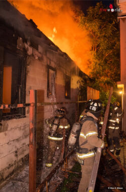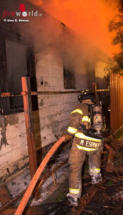 FORT WORTH (USA): Feuerwehrleute von Fort Worth in Texas standen am frühen Morgen des 16. Juni 2015 beim Brand eines Messie-Hauses am Block 2600 in Columbus im Einsatz. Bei Ankunft der Engine 15 wurde den Kräften eine Person in dem bereits in Brand stehenden Gebäude gemeldet.