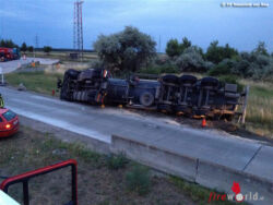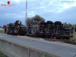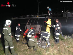 Der Lenker wurde verletzt und in das Spital gebracht. Am Unfallort trat Ladegut aus. Hier wurde die OF Nickelsdorf gemeinsam mit der STF Neusiedl zum Einsatzort gerufen. Weiters wurde der Gefahrgutzug Nord (FF Eisenstadt) für Umpumparbeiten angefordert. Die Umpumparbeiten auf einen Ersatz-Lkw dauerten die ganze Nacht an.