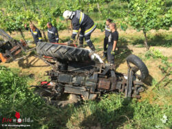 KIRCHBERG AM WAGRAM (NÖ): Selber Weinbaubetrieb, selbe Weingartenlage, eineinhalb Tage vergangen. Manche Kameraden der FF Kirchberg am Wagram glaubten beim Pager / Blaulicht-SMS zum Traktorabsturz am 17. Juni 2015 um 9 Uhr wohl an einen Fehler des Alarmierungsprogrammes.