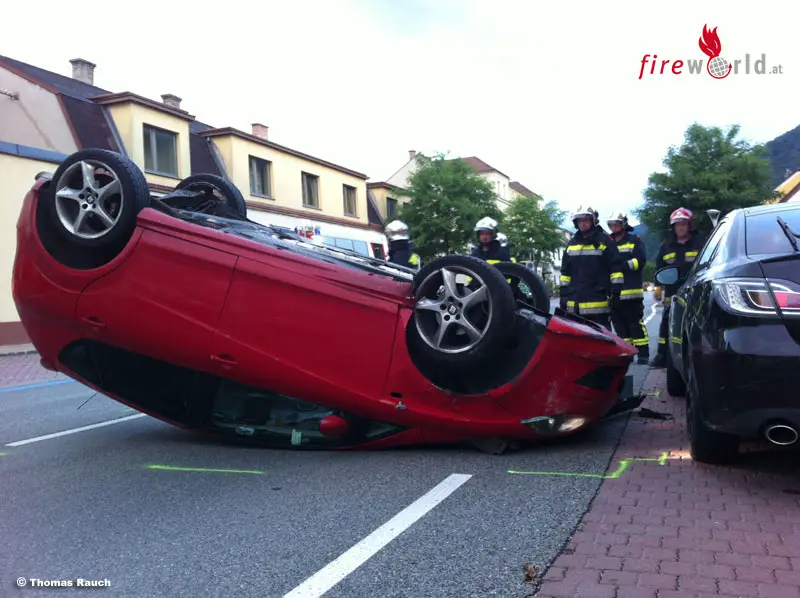 Nö: Pkw kracht in Gloggnitz gegen parkendes Auto und landet am Dach