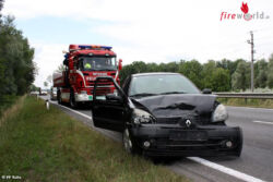 Der Lenker eines Renault Clio ist einem vor ihm fahrenden Mazda 2 aufgefahren. Beide Fahrzeuglenker blieben bei dem Unfall unverletzt. Noch während der Unfallaufnahme durch die Exekutive wurden durch die Feuerwehr ausgeflossene Betriebsmittel gebunden. Anschließend konnten die Unfallfahrzeuge von der Fahrbahn entfernt und zu einem nahe gelegenen Abstellplatz gebracht werden. Bereits um 09:38 Uhr sind die Einsatzkräfte wieder ins Feuerwehrhaus eingerückt.