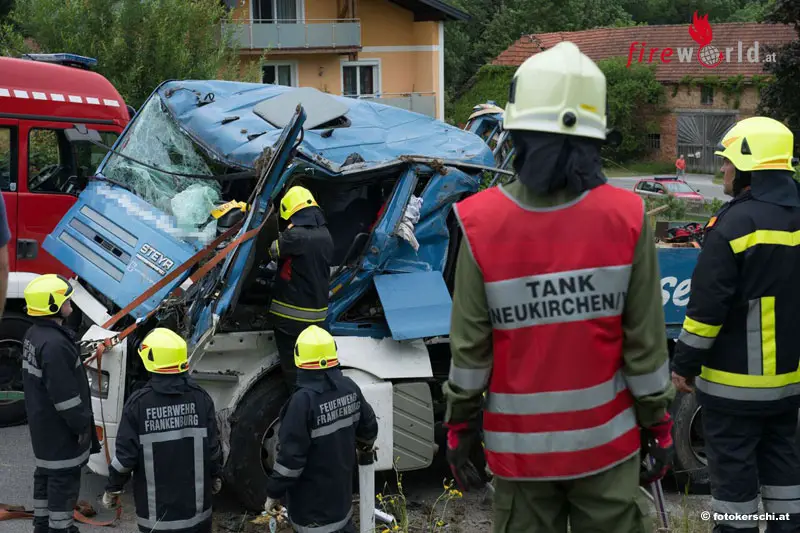 Der Sattelanhänger samt Zugfahrzeug stürzte um und rutschte gegen die Böschung. Beim Anprall wurde das Führerhaus beinahe gänzlich eingedrückt und der Verunglückte eingeklemmt. Dabei erlitt der Kraftfahrer tödliche Verletzungen. Die Bergung des Lkw und die Absicherung der Unfallstelle wurde von den FF Ackersberg, Frankenburg, Zell am Pettenfirst und Neukirchen/V. sowie dem Kranwagen der FF Vöcklabruck mit 45 Mann durchgeführt.