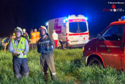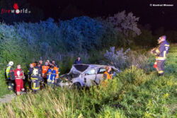 Circa 20 m vom Unfallwrack entfernt konnte im ca. 30 cm hohen Gras eine leblose Person gefunden werden. Gemeinsam mit dem Rettungsdienst wurden Wiederbelebungsmaßnahmen eingeleitet sowie der Notarztwagen nachgefordert. Trotz bester Zusammenarbeit aller Einsatzkräfte konnte der Notarzt nur noch den Tod des Verunfallten feststellen.