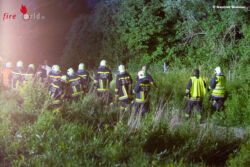 Da nicht ausgeschlossen werden konnte, ob weitere Personen am Unfall beteiligt waren, wurde die ÖHU Suchhundestaffel angefordert und gemeinsam das Gelände abgesucht. Da diese Suche im unmittelbar angrenzenden Bereich erfolglos blieb konnte der Großteil der Einsatzkräfte nach ca. 2,5 Stunden abrücken.