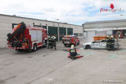 Beide Stationen, bei denen insgesamt fast 40 Einsatzkräfte von Rettung und Feuerwehr teilnahmen, konnten erfolgreich abgeschlossen und alle Übungsziele eingehalten werden. Nach einer Meldung über einen Verkehrsunfall wird unser Vorausrüstfahrzeug zur Fahrzeugbergung alarmiert. Am Einsatzort eingetroffen finden die Feuerwehrleute ein Fahrzeug in Vollbrand und einen Verletzten vor, der sich im Zuge der ersten Löschhilfe Verbrennungen an Armen und im Gesicht zugezogen hatte. Die ersteintreffende Mannschaft führte unter Atemschutz und mithilfe der Polylöschanlage des VRF die erste Brandbekämpfung durch und versorgte den Verletzten. Nachdem kurze Zeit später die angeforderte Verstärkung in Form zweier Tanklöschfahrzeuge und eines Rettungswagens eingetroffen war, konnte der Fahrzeugbrand erfolgreich abgelöscht und der Verletzte an den Rettungsdienst übergeben werden. Der Verletzte gab während der Versorgung durch die Sanitäter an, dass seiner Meinung nach ein zweites Fahrzeug an dem Unfall beteiligt war.