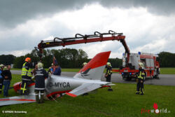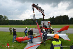 Ca. 25 Minuten nach dem Alarm war alles fertig und der mit einer Person besetzte Flieger konnte neben der Landebahn auf Gras aufsetzen. Glücklicherweise gelang die geplante und gesicherte Notlandung, ohne dass sich die Person verletzte. In weiterer Folge wurde das Flugzeug mittels Kran des Schweren Rüstfahrzeugs der FF Schärding geborgen, sodass die Landebahn wieder frei war. Die Feuerwehren rückten um ca. 11.30 Uhr wieder ein.