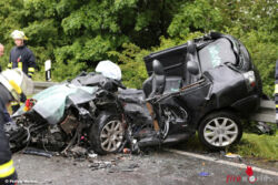 Trotz aller Rettungsversuche verstarb ein Unfallopfer, die beiden Verletzten wurden mit dem Rettungshubschrauber beziehungsweise einem Rettungswagen in umliegende Kliniken eingeliefert. Zur Unfallursache konnte die Polizei noch keine Angaben machen. Per 20.45 Uhr standen mehrere Notfallseelsorger zur Betreuung der Unfallbetroffenen im Einsatz.