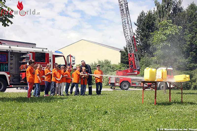 WAIDHOFEN AN DER THAYA (NÖ): Am 22. Juni 2015 verbrachten die Schülerinnen und Schüler der drei 3. Klassen der Volksschule Waidhofen/Thaya den Vormittag bei der Freiw. Feuerwehr, wo sie zum Ende des Schuljahres einen nicht alltäglichen Schultag erleben konnten.
