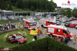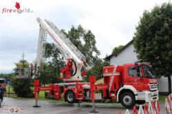 Neben einer Präsentation der Feuerwehrfahrzeuge aus Grödig und Fürstenbrunn, waren auch noch das Schwere Rüstfahrzeug mit Kran der FF Bergheim und die Teleskopmastbühne der FF Golling in Grödig zu Gast.