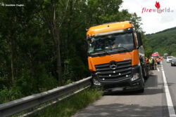 Nach ca. 80 Metern – in leichter Schräglage stehend – und nachdem die Zugmaschiene eine große Verkehrstafel touchiert hatte, kam das Gespann manövierunfähig zum Stillstand. Nach dem Eintreffen der Feuerwehr Alland, der Polizei, eines Bergeunternehmens und der Asfinag fand eine Lagebesprechung statt. Es wurde entschieden, den Feierabendverkehr abzuwarten, um die Verkehrsbelastung bzw. -behinderungen gering zu halten. Desweiteren konnte eine Bergung mittels Kranfahrzeug ausgeschlossen werden, weil sich das Gespann tief unter die Leitschiene geschoben hatte. Abgesichert durch ein Fahrzeug der Asfinag verblieb der Lkw bis in die Abendstunden stehen.