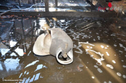 Als sich der erste Löschtrupp unter Atemschutz auf den Dachboden begab, kam es zum Zerknall von zwei 11-Kilo-Flüssiggasflaschen. Im Verlauf der weiteren Löscharbeiten konnten zwei weitere 33-Kilo-Flüssiggasflaschen gekühlt und in Sicherheit gebracht werden. Mehrere Bauarbeiter wurden durch die Feuerwehr in Sicherheit gebracht.