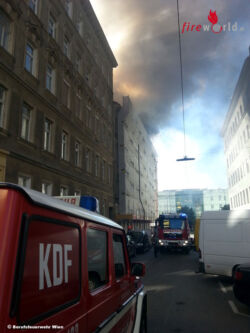 WIEN: Am Abend des 23. Juni 2015 wurden die Einsatzkräfte der Berufsfeuerwehr Wien zu einem Dachbrand nach Wien-Favoriten gerufen. Bei einem in Umbau befindlichem Wohnhaus war der Dachstuhl in Brand geraten.
