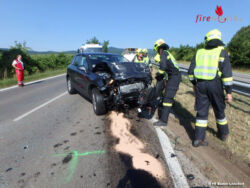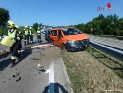 BADEN LEESDORF (NÖ): Am Vormittag des 26. Juni 2015 wurde die Freiwillige Feuerwehr Baden Leesdorf zu einem Verkehrsunfall auf die B210, Umfahrungsstraße Baden, gerufen.